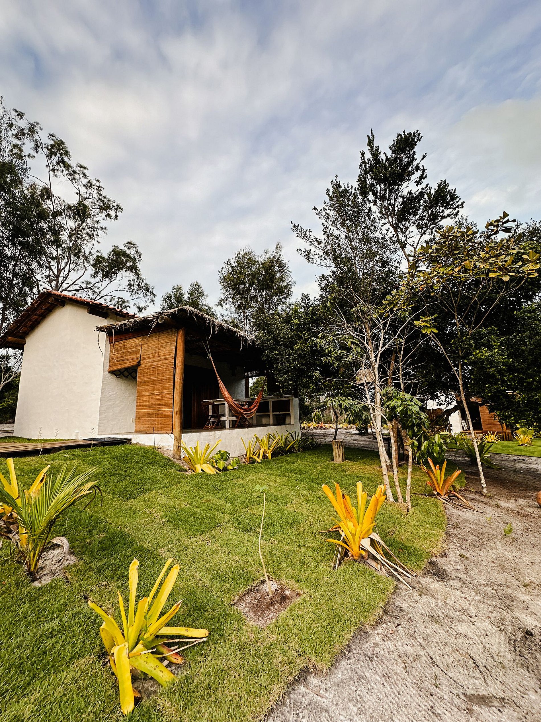 Cada chalé possui 1 ducha externa, grelha para churrasco, espaço para redes, uma bicicleta.
